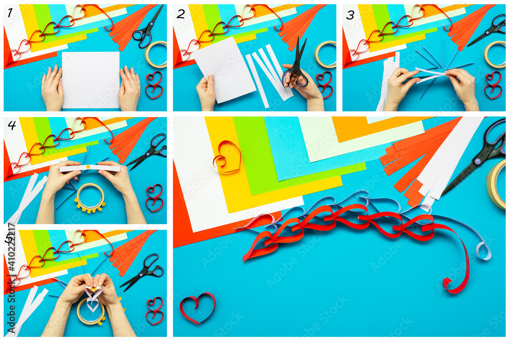 DIY instruction. Step by step guide. The process of making a garland of hearts for Valentine's Day