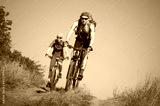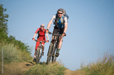 two cyclists biking