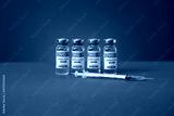 Covid-19 vaccine. Vial and syring with coronavirus Sars-Cov-2 jab Injections. Vaccine shortages setback for Its immunization race. Close up Ampoules dose on red background and place for text.