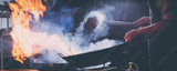 Chef stir fry busy cooking in kitchen