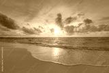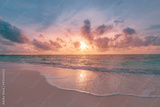 Closeup sea sand beach. Panoramic beach landscape. Inspire tropical beach seascape horizon. Orange and golden sunset sky calmness tranquil relaxing sunlight summer mood. Vacation travel holiday banner