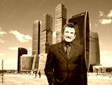 Businessman and office buildings