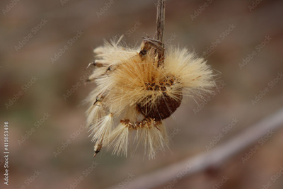 Close-up of Plane or Sycamore tree with dry seeds on branches in the garden. Platanus occidentalis on winter
