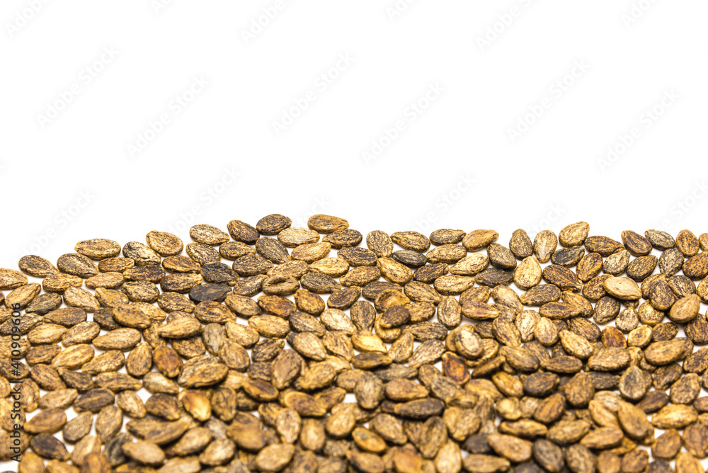 Cutout with copy space organic black diamond watermelon seeds isolated on white