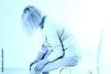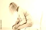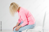 Middle aged woman knee pain. Mid age female touching and massaging painful leg. Healthcare and bodycare concept. Aging Discomfort and illness in knees. Menopause period