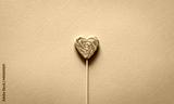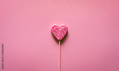 Heart shape pink lollipop on the pink background. Valentine's day greeting card