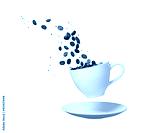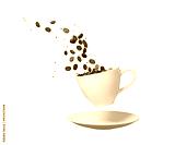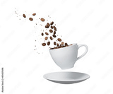 Roasted coffee bean spilling form a white cup