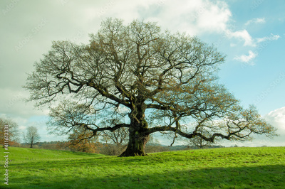 Springtime oak tree in a meadow.