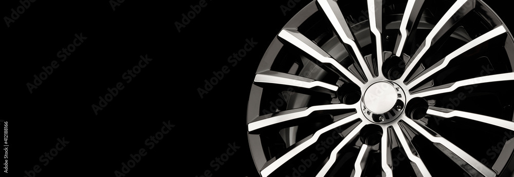 new black aluminum alloy wheel die cast disc close up, copy space