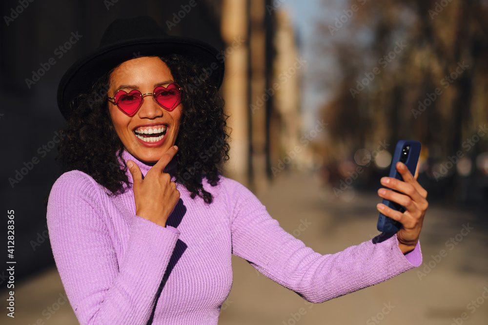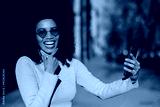 Woman taking a selfie with her phone.