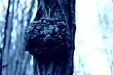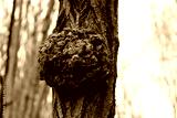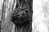 Tree in the forest with a big deformation on his trunk. Tree with disease
