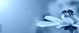 Bee and flower. Close up of a large striped bee collecting pollen on a yellow flower on a Sunny bright day. Banner, on the left is an empty space for the text. Summer and spring backgrounds