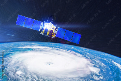 Research, probing, monitoring hurricane Florence. Satellite above the Earth makes measurements of the weather parameters. Elements of this image furnished by NASA.