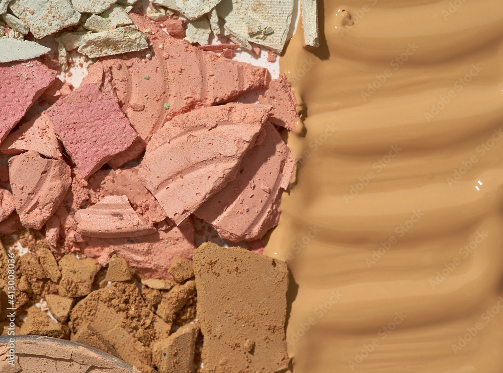 Broken eyeshadows in trendy shades isolated on white background