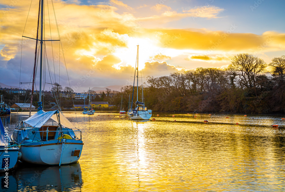 View of Caernarfon, a medieval fortress in Caernarfon, Gwynedd, north-west Wales