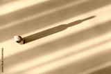 Cosmetic bottle made of dark glass on a pink pastel surface. A spectacular long shadow comes from the bottle. Top view, minimalism, copy space. Natural organic vegan cosmetics concept...