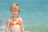Beautiful little girl playing in the sea