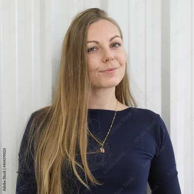 Portrait of cute beautiful woman poses to a camera with self-confidence
