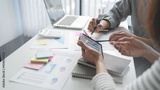 discuss about new startup project.business team briefing plan. creative startup business people group in office