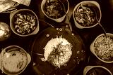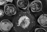 An assotment of Sri Lankan dishes like red rice and different pickles.