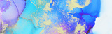 art photography of abstract fluid art painting with alcohol ink, blue, purple and gold colors