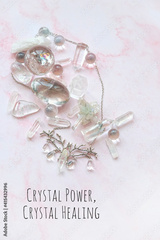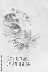Crystal Power, Crystal Healing. set of clear quartz crystals. gemstones Ritual. Healing minerals for Chakra Relaxation, Wiccan Witchcraft. life balance, esoteric, spiritual practice