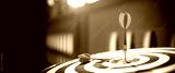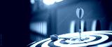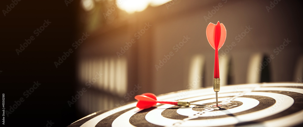 Close-up the bullseye target or or dart board has dart arrow throw hitting the center of a shooting for business targeting and aim to winning goals concepts
