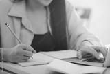 Closeup woman hands using computer laptop.