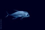 Brassy trevally, Caranx papuensis or Papuan fish isolated on black