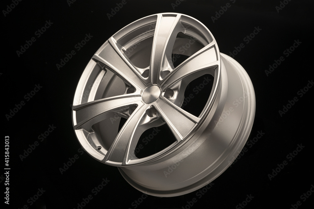 silver alloy wheel for crossovers and SUVs on a dark background, close-up
