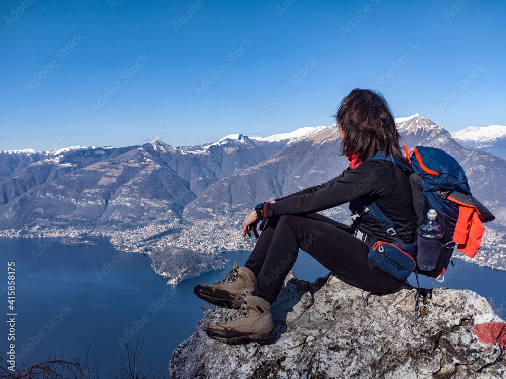 Trekking scene on Lake Como alps