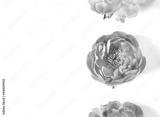 Fresh beautiful coral peonies close up on the white background banner. Copy space