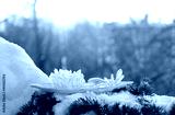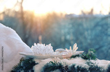 Clear quartz minerals on snowy landscape. Crystal Ritual. Esoteric, meditation, relax, life balance concept. spiritual practice, modern magic. winter season