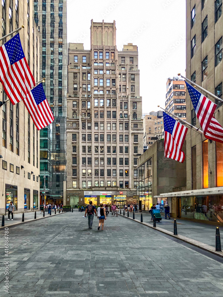 American Flag flying in Rockefeller Plaza in Manhattan New York