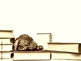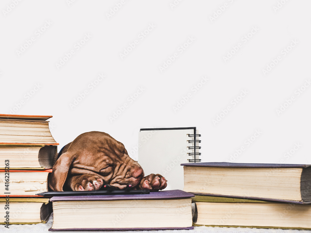 Charming, adorable puppy of brown color. Close-up, indoor. Studio photo. Concept of care, education, obedience training, raising pets