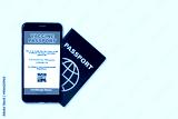 Vaccine passport concept showing proof of COVID-19 vaccination on smartphone and travel passport. New normal for air and land border travel.