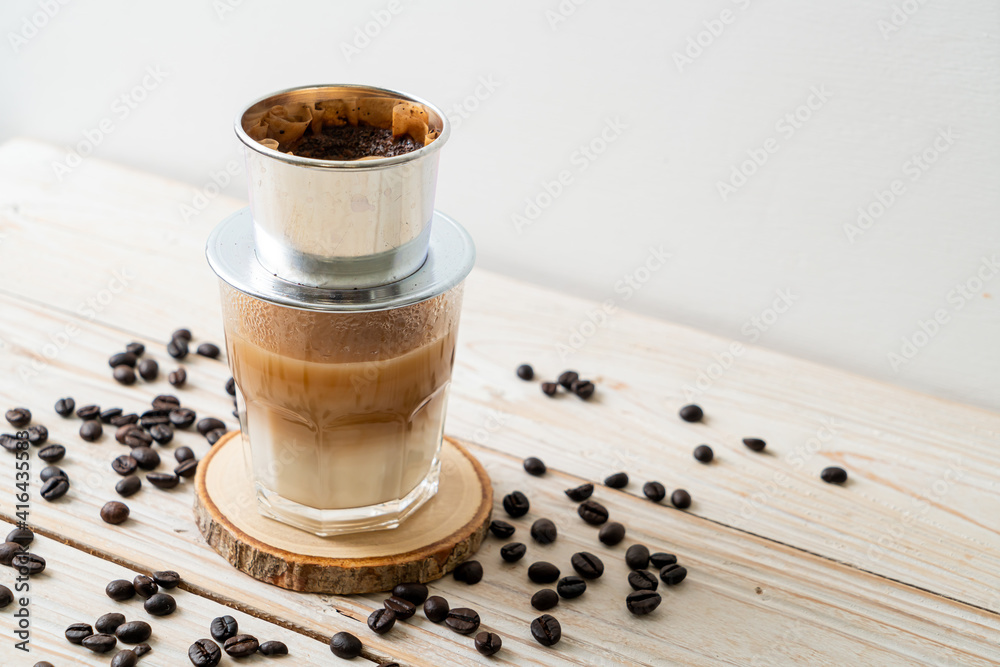 Hot milk coffee dripping in Vietnam style