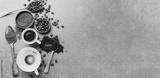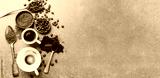 Espresso served in cups with coffee beans