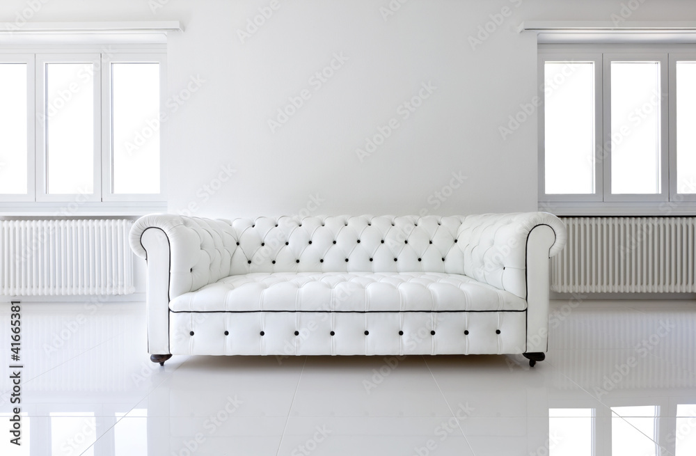 interior, leather sofa in white room