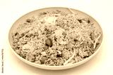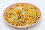 Homemade Chinese Style Fried Rice with Meat on a Pink Plate