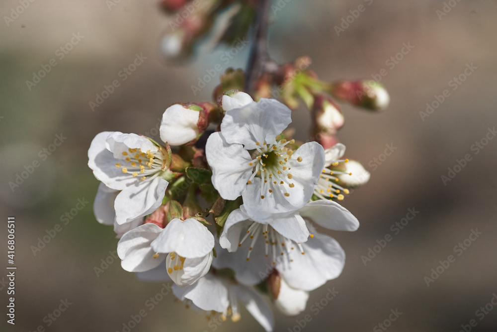 Close up white cherry blossom tree in the spring