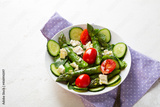 Close up of vegetarian salad with asparagus, clean food concept