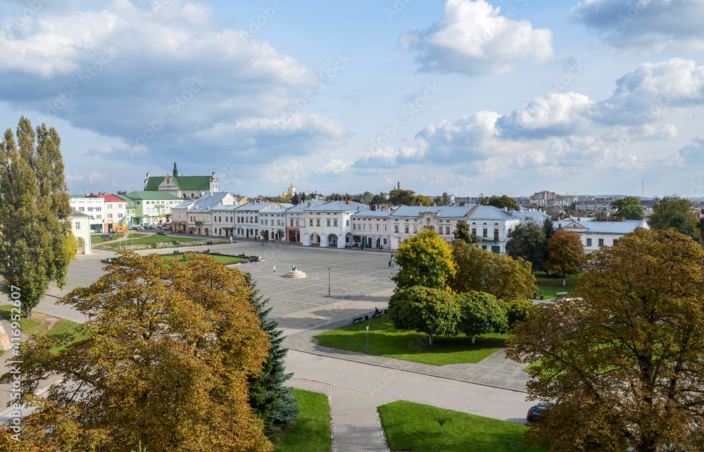 View on market square in Ancient historical city Zhovkva, Lviv region, Ukraine. Tourism destination, travel