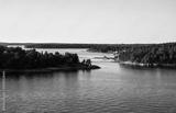 Dwellings islands on Stockholm archipelago in Baltic sea at sunny morning, Sweden