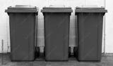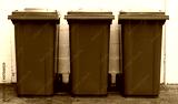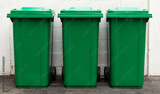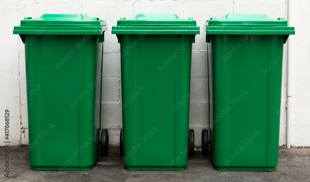A new unbox green large bins ready to use on footpath and white concrete wall