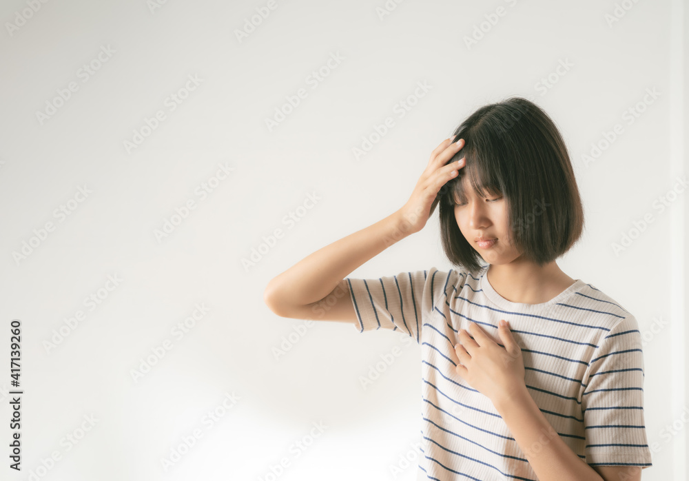 Asian women showing headaches and chest pain.