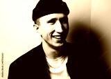 portrait of smiling young man wearing black knit hat. Black and white studio shot on white background. Teenagerhood.