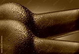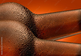 Two bottles of steamed beer, the necks with drops close-up. A symbol of thirst and pleasure, they resemble sexy legs and a black woman