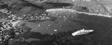 View from above, stunning aerial view of the Grande Pevero beach with boats and luxury yachts sailing on a turquoise, clear water. Sardinia, Italy.