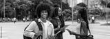 Young afro american male student with group of young adults